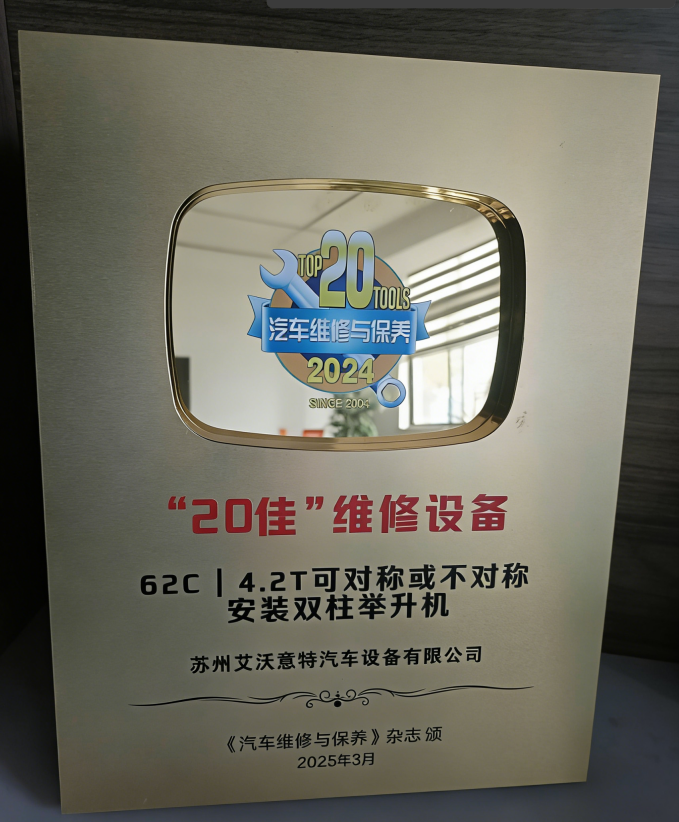 艾沃意特全新一代62c双柱举升机,从百余款维修设备中脱颖而出,被评为2025年度“20佳维修设备”。