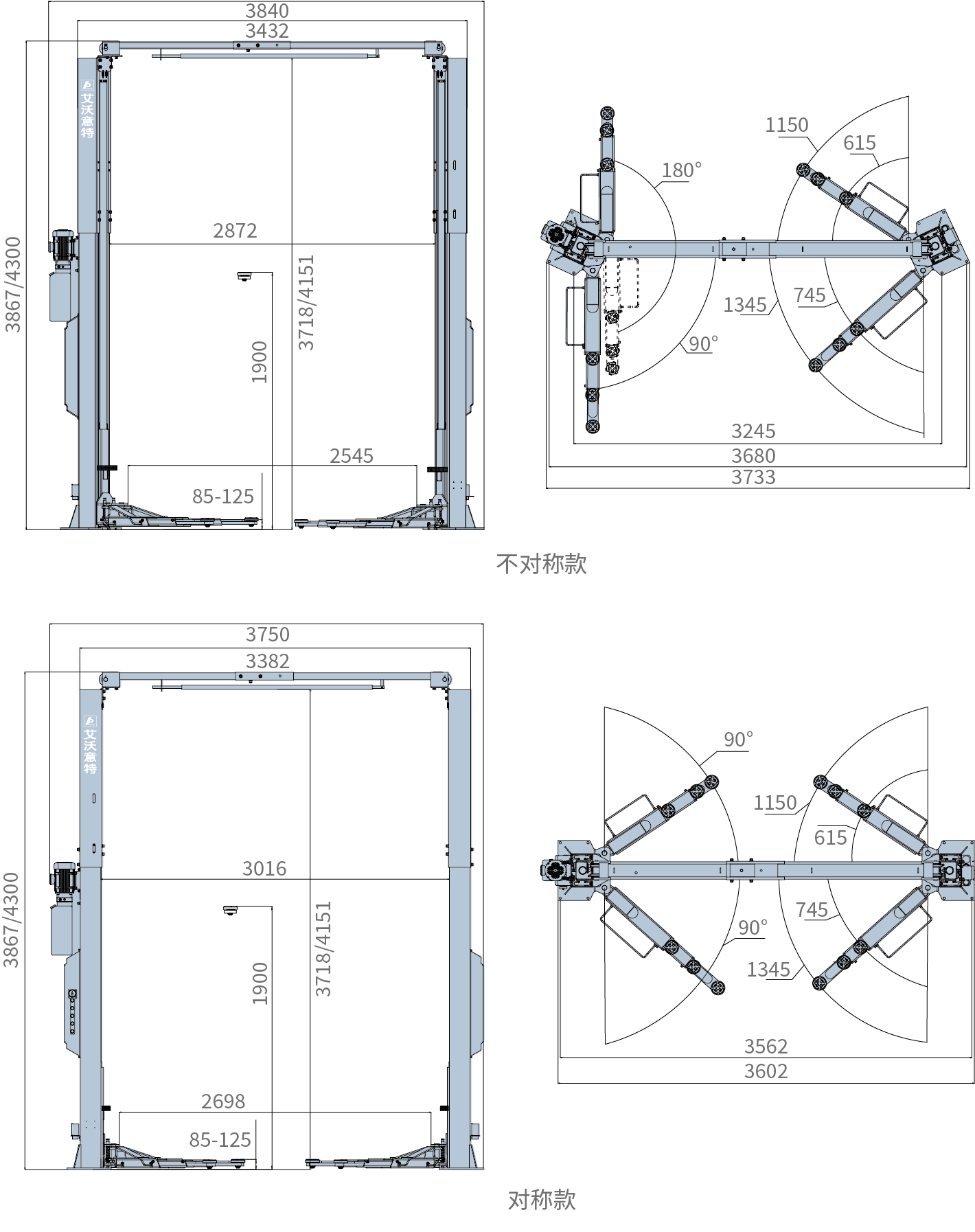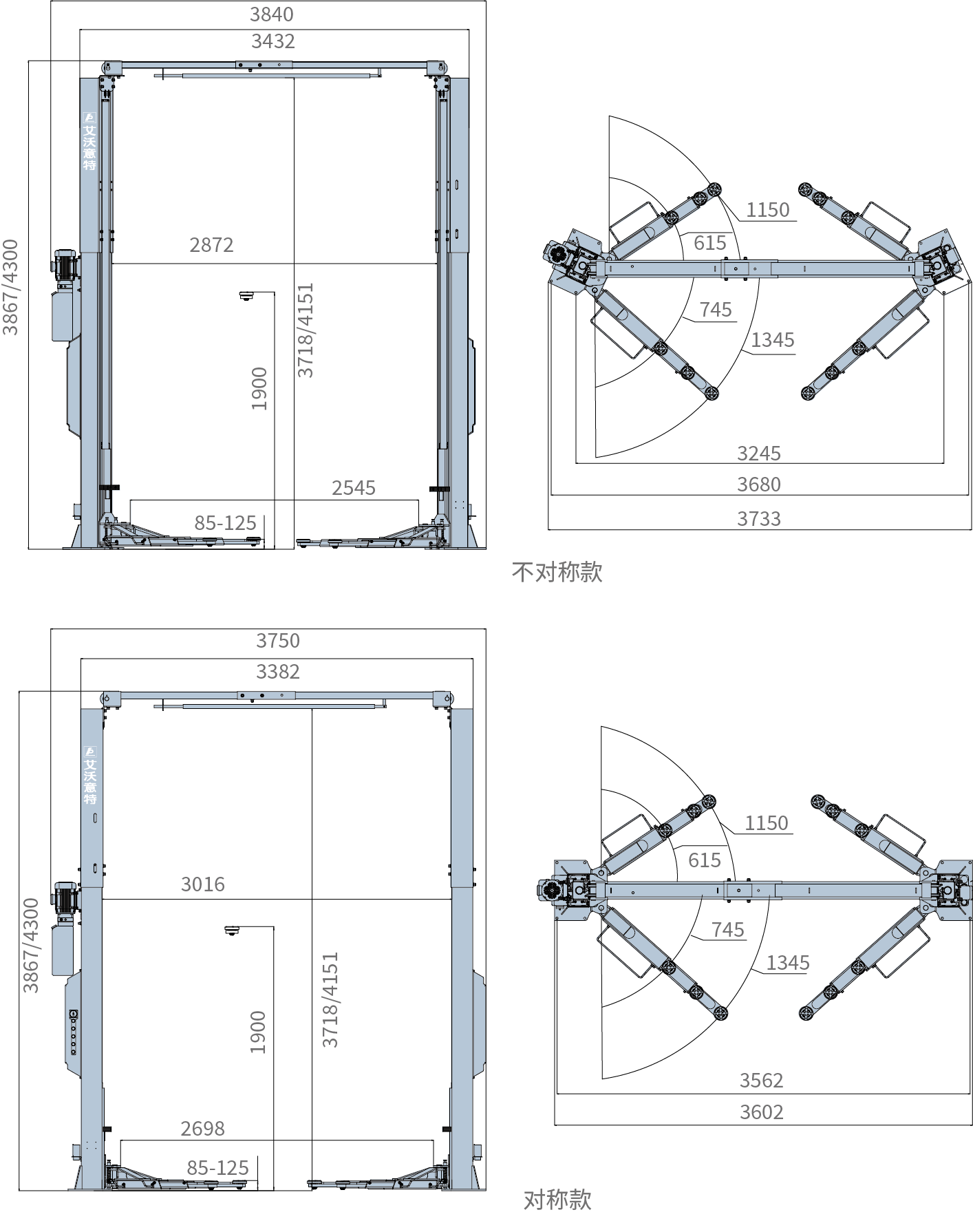 | 结构型式 | 不对称款 | 对称款 |