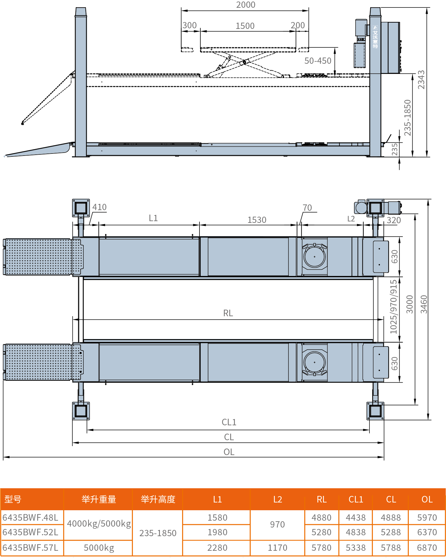 | 举升重量 | 4000kg/5000kg |