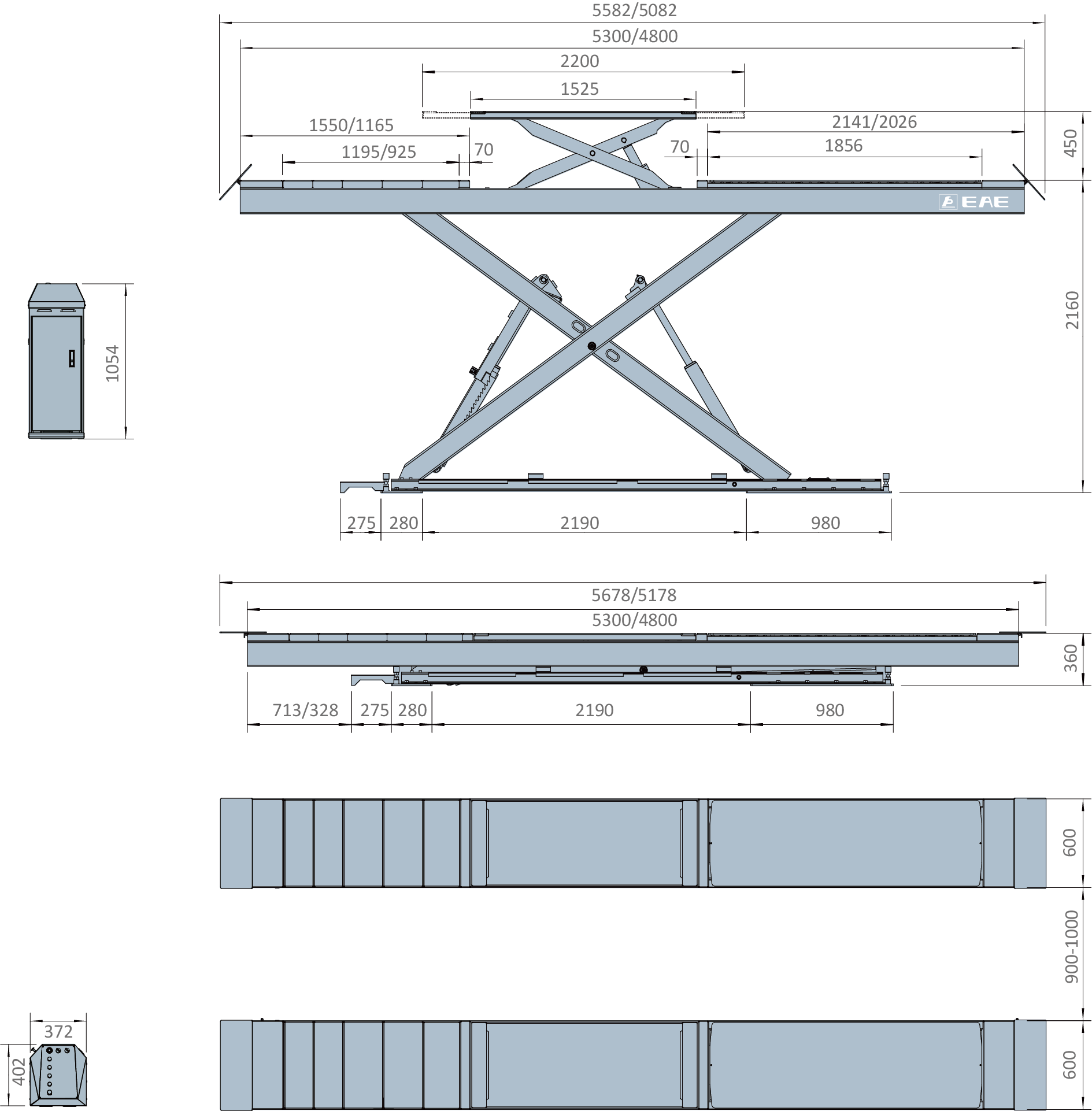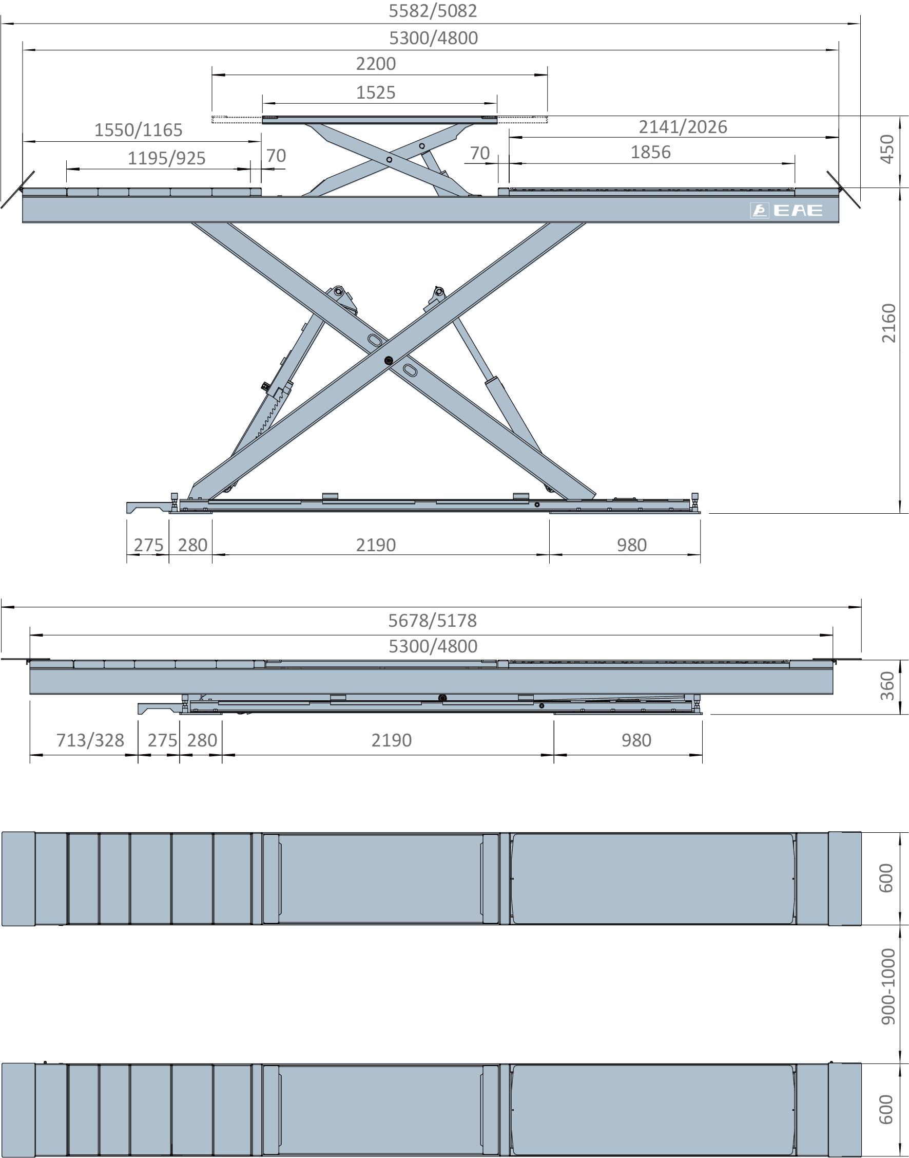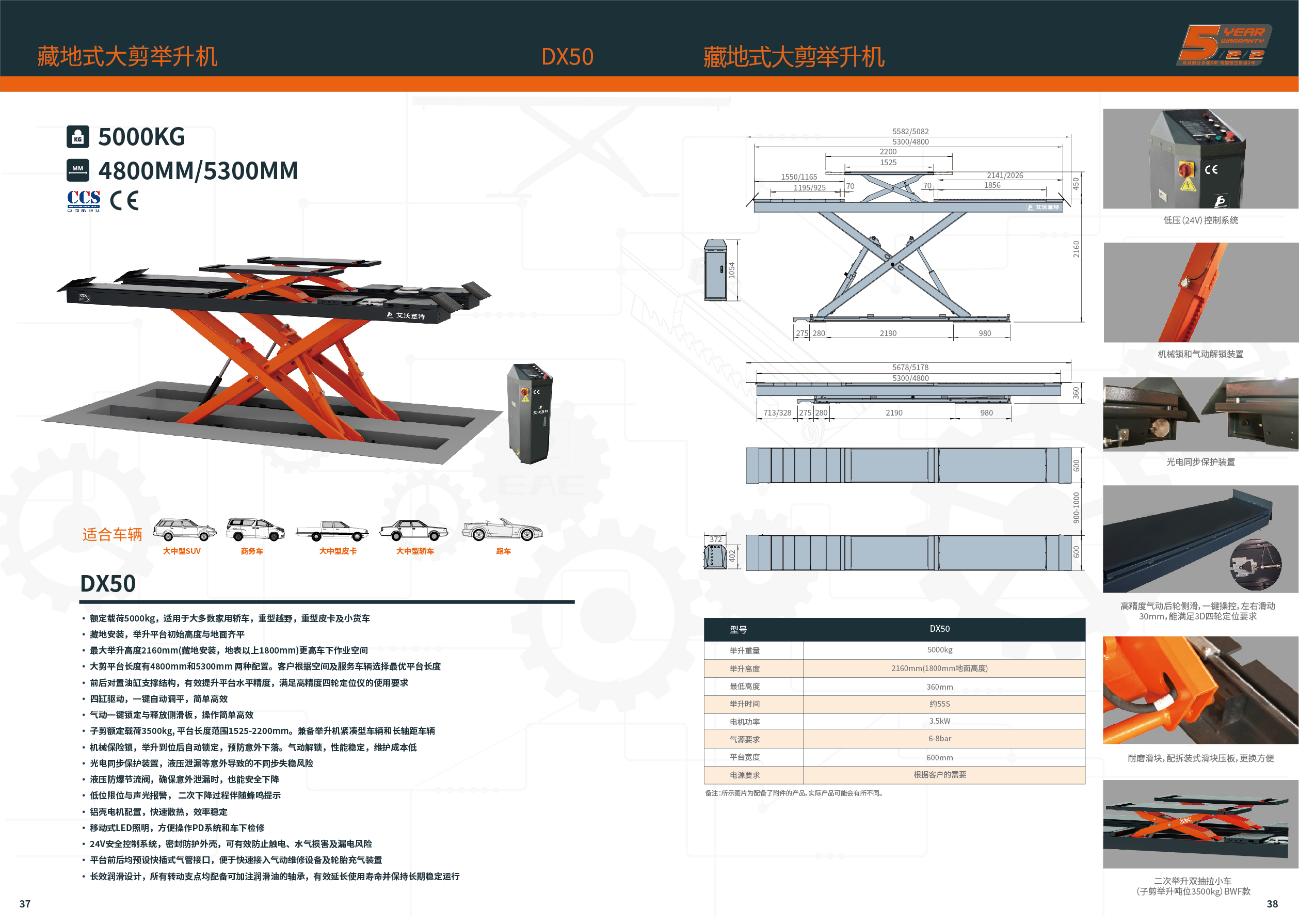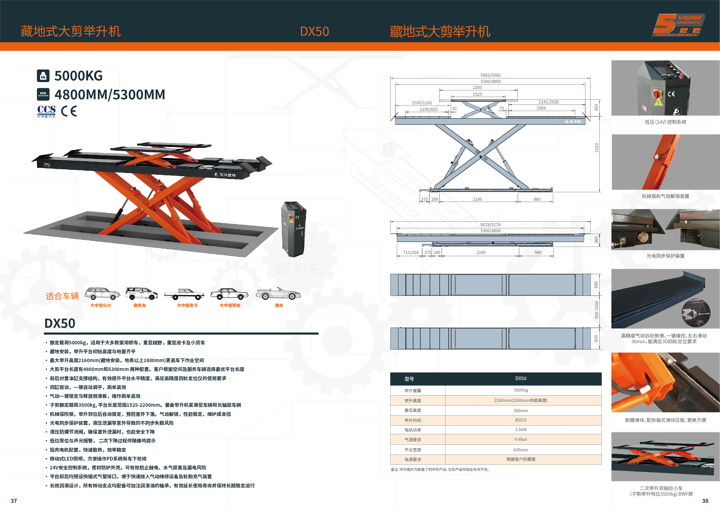 ·大剪平台长度有4800mm和5300mm 两种配置。客户根据空间及服务车辆选择最优平台长度;